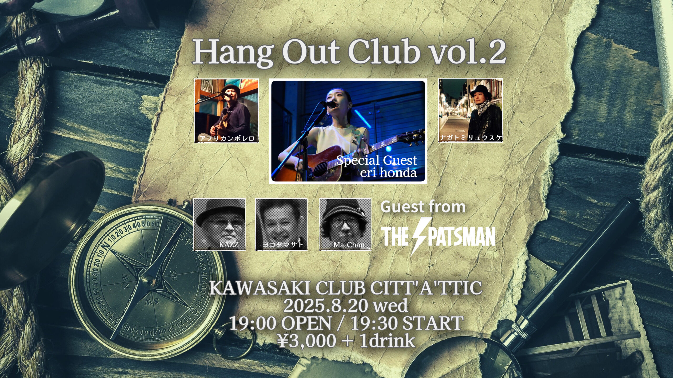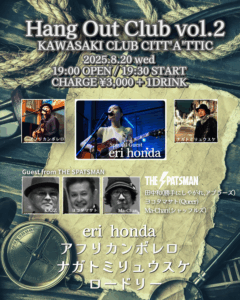 2025年8月20日水曜日、川崎クラブチッタアティックでHang Out Club vol.2を開催します。